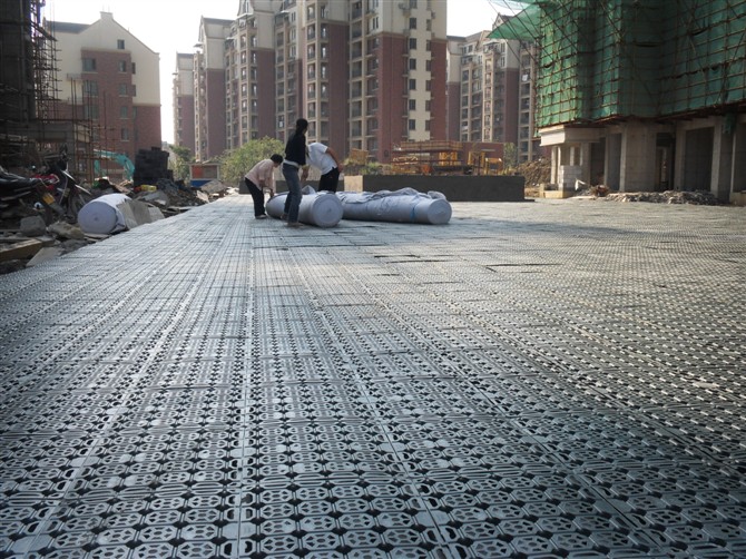 3、如圖所示,蓄排水板凸起朝下,齒孔相扣鋪設(shè);
